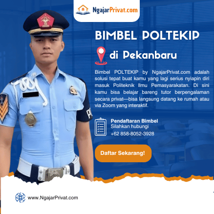 Apakah putra-putri Ayah dan Bunda sedang mempersiapkan diri menghadapi seleksi masuk POLTEKIP (Politeknik Ilmu Pemasyarakatan)? Jangan biarkan mereka berjuang sendirian! Kami dari LapakGuruPrivat.com hadir untuk mendampingi proses belajar secara intensif, baik secara offline (guru datang ke rumah di Pekanbaru) maupun online via Zoom yang fleksibel dan interaktif.